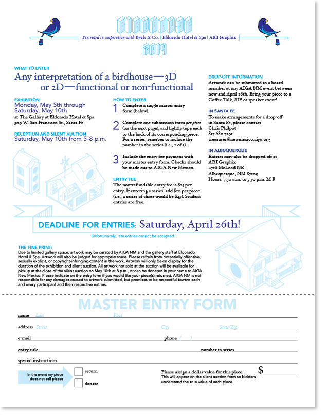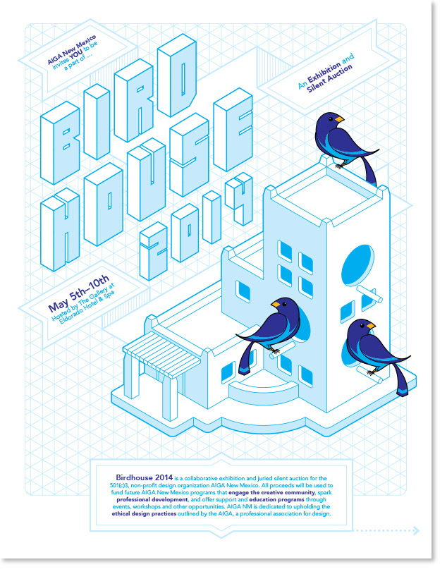 An exhibition and auction of custom birdhouses to support our local AIGA chapter. Display type design by Jess Danielle.