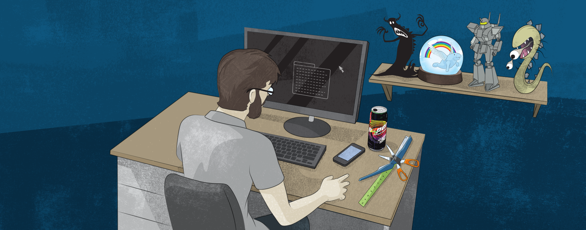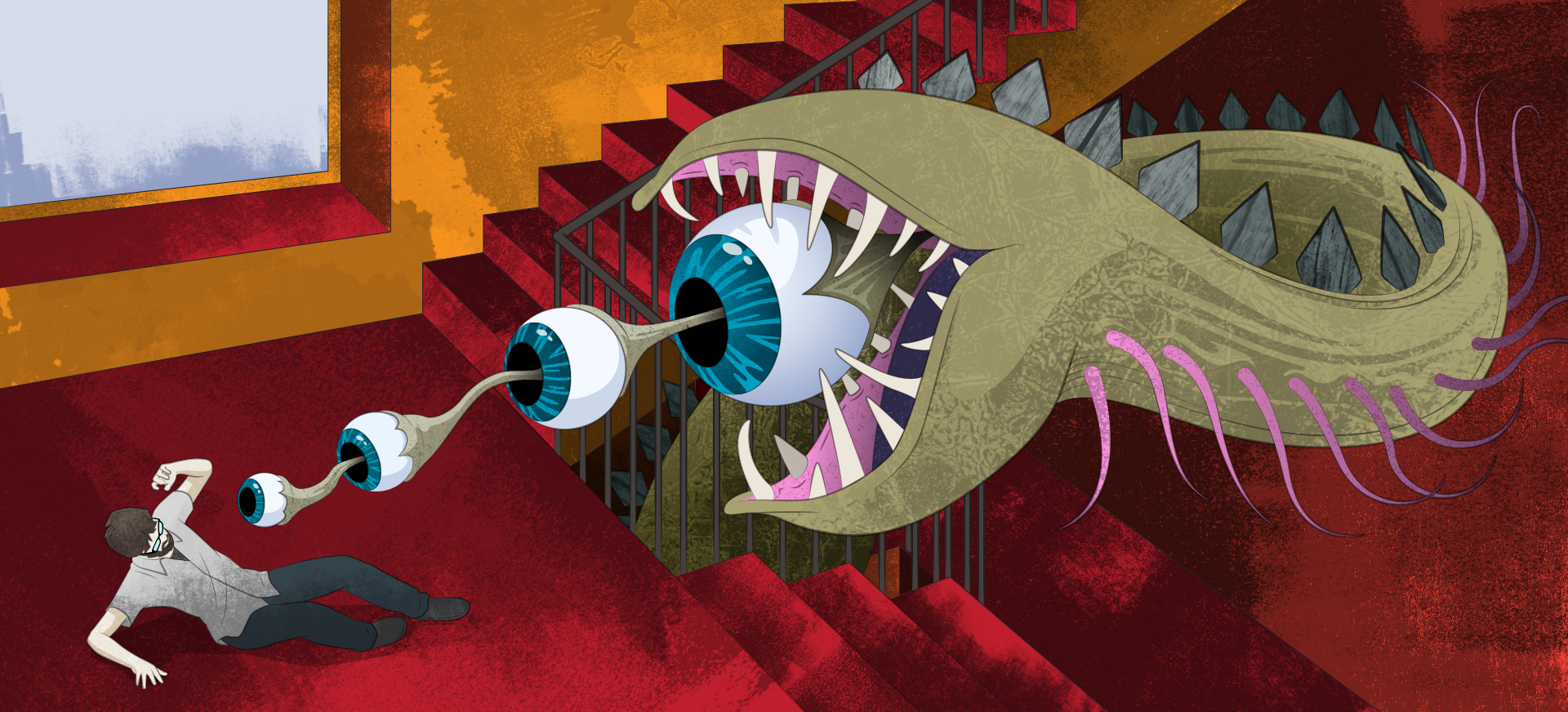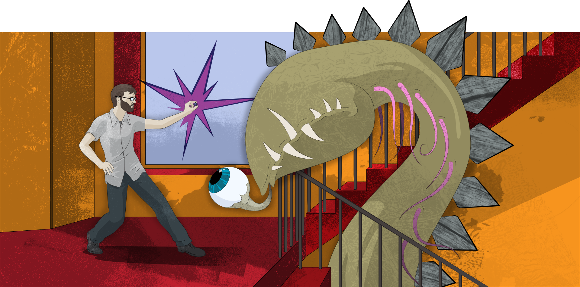 These illustrations populated an interactive landing page detailing the horror of server downtime. Each user's choice led to a new scenario in the style of classic choose-your-own-adventure books.
